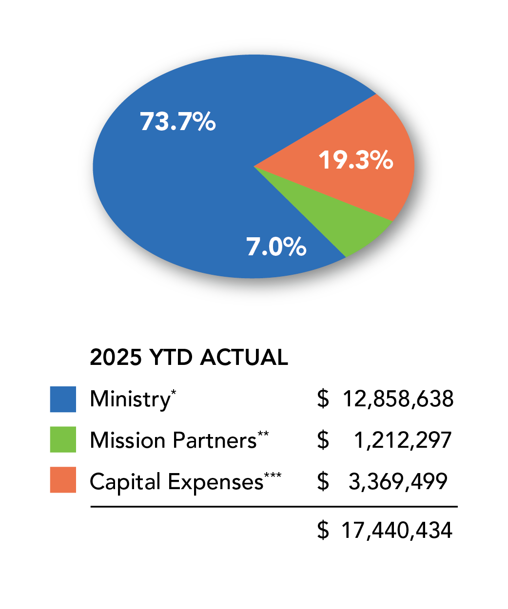 ** Mission Partners supports more than 65 local and global ministries. The planned 2025 spend is consistent with prior years.