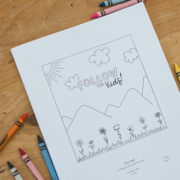 Built to mirror the adult Follow guide, this kid-forward guide allows families to walk side by side—children and parents learning the same truths together. Through scripture, art, and conversation, kids discover that their story matters, Jesus loves them deeply, and following Him is an adventure worth taking.